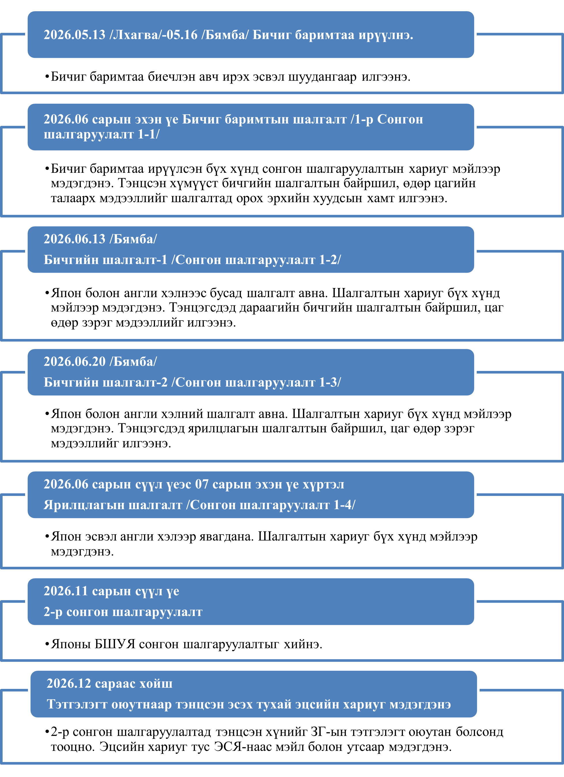 2.Бүртгэл болон сонгон шалгаруулалтын дараалал