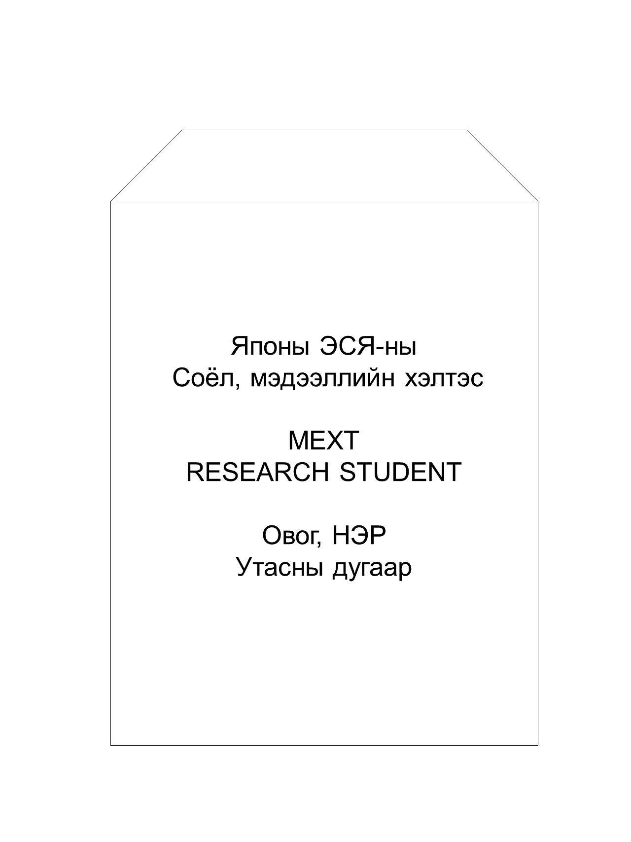 ※Бүрдүүлсэн бичиг баримтаа А4-ийн дугтуйнд хийж, Зураг 1-д заасны дагуу бөглөж ирүүнэ үү.