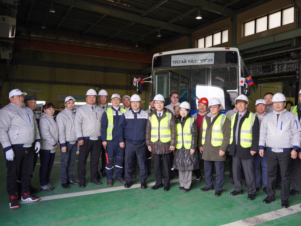 井川原大使夫妻によるウランバートル市第一バス公社の視察