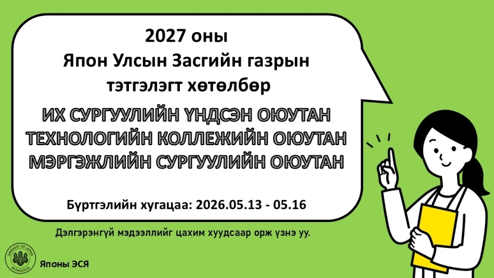 2027 оны Япон Улсын Засгийн газрын тэтгэлэгт хөтөлбөр зарлагдлаа /СУДЛААЧ ОЮУТАН/