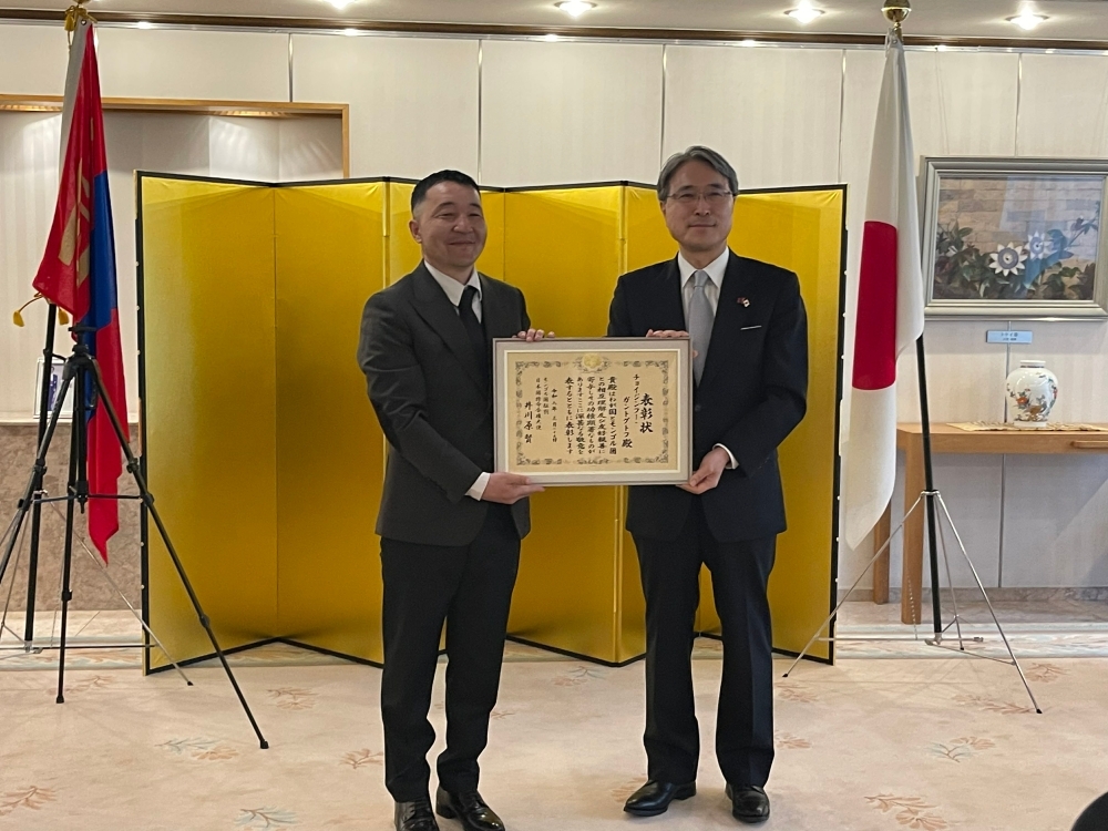 Япон иргэдийн дурсгалын цогцолборын хадгалалт хамгаалалт хариуцсан ажилтан Ч.Гантогтоход Япон Улсаас Монгол Улсад суугаа Элчин сайдын өргөмжлөл гардуулав
